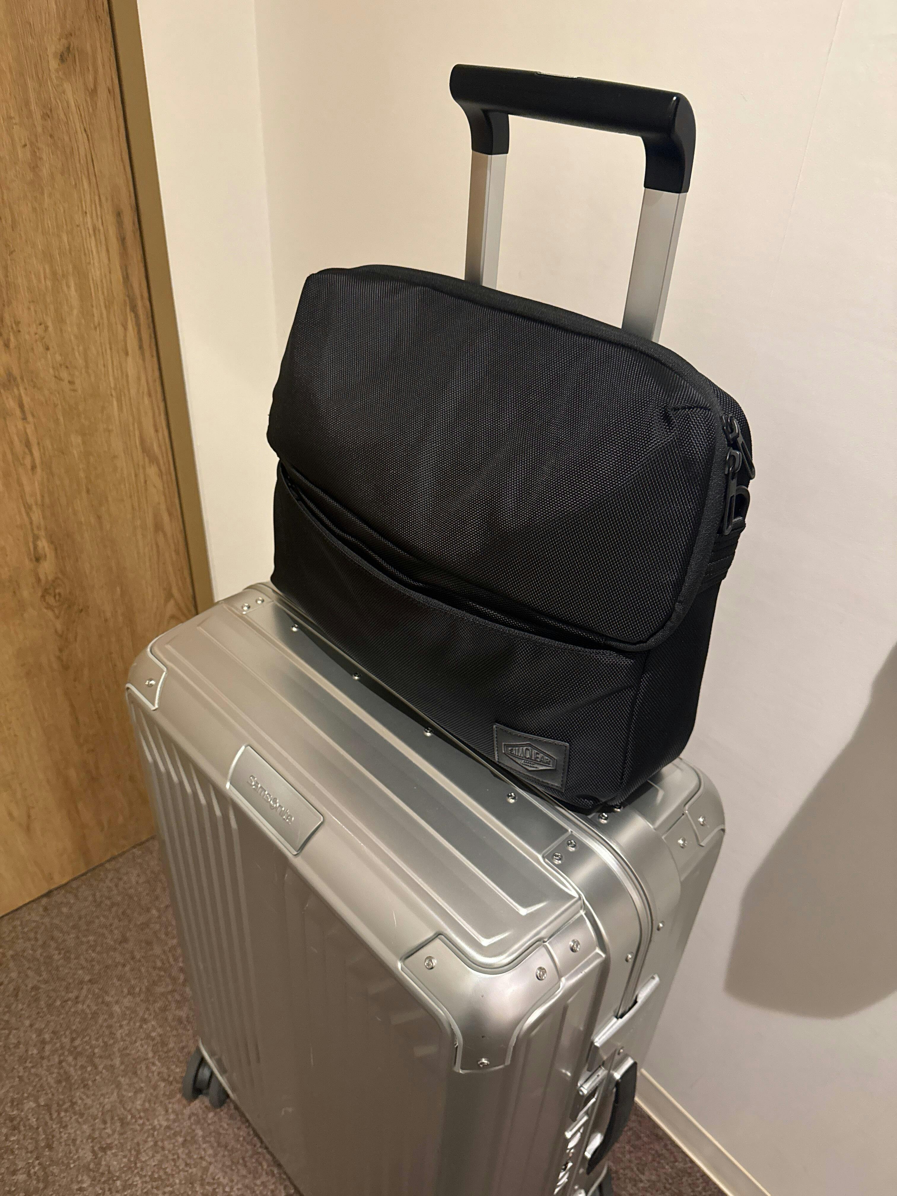 ですが自立しにくかったり固定できなかったりと、キャリーケース上で使いやすいカバンと出会えませんでした。
