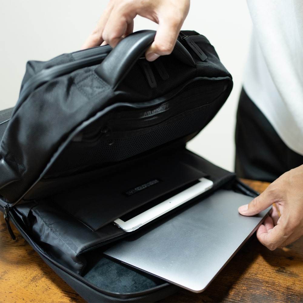 リュックとして背負えば、両手が空いて通勤や移動も快適に。