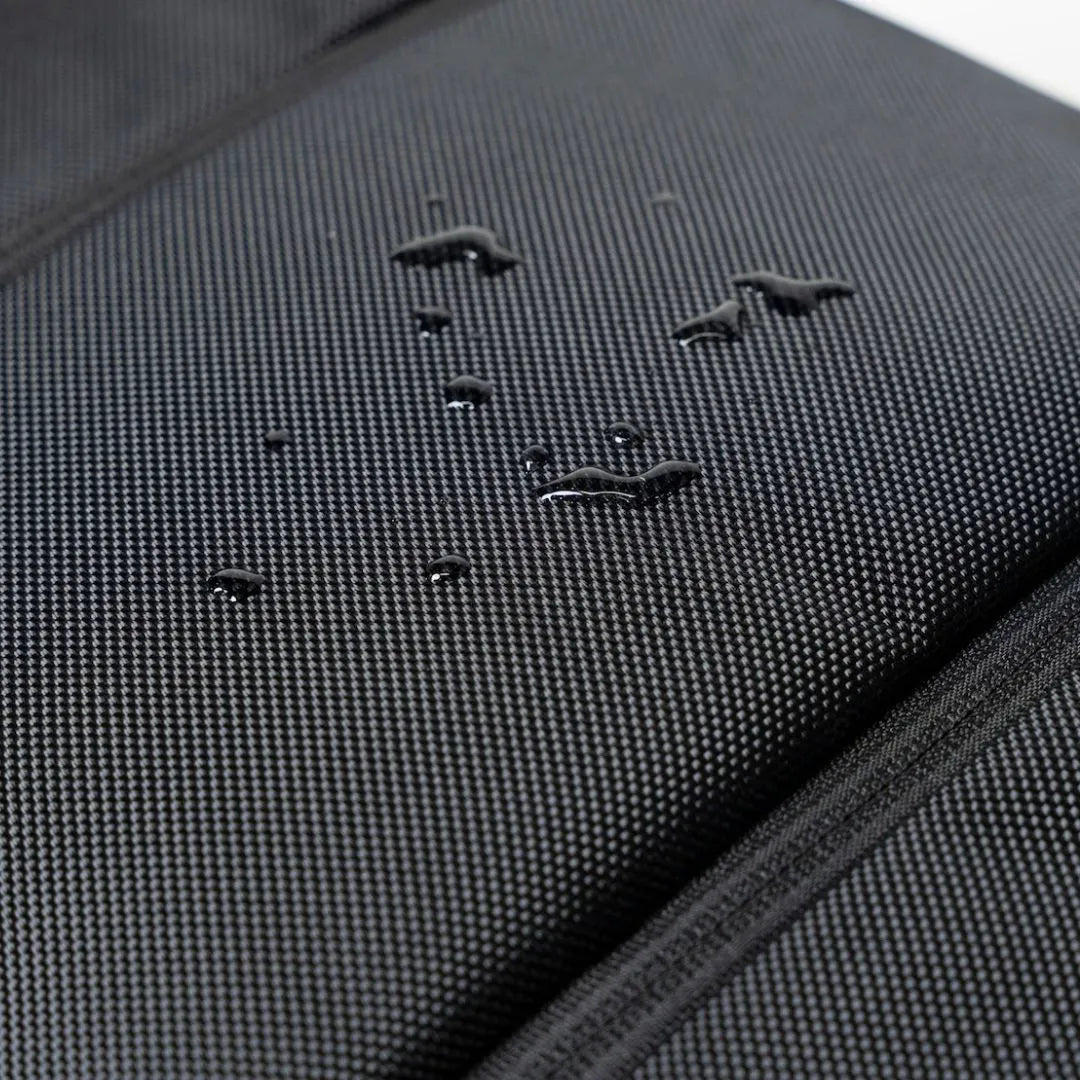 本体には、1680デニールの高密度ポリエステルに撥水加工を施した素材を使用。