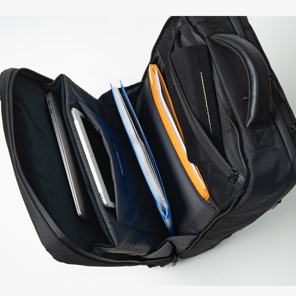 24Lの収納力で、PC・書類・着替えまでしっかり収まる。荷物が多い日もこれひとつでOK。