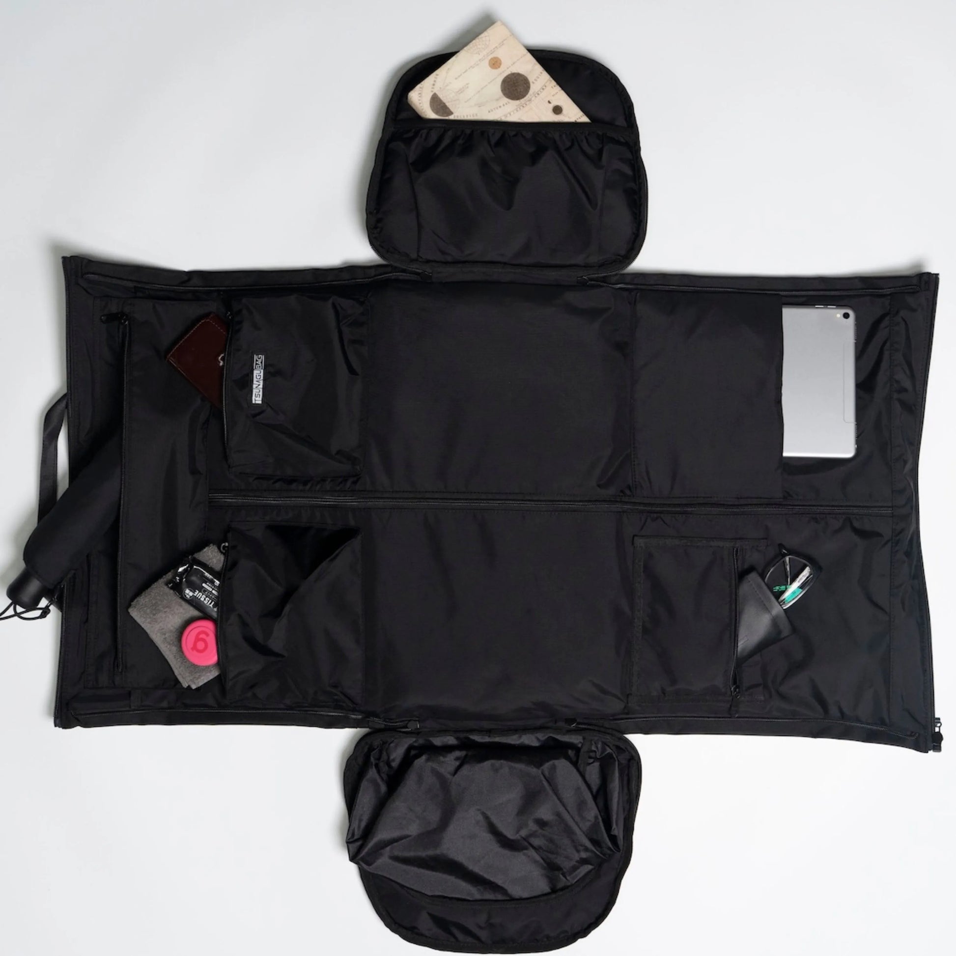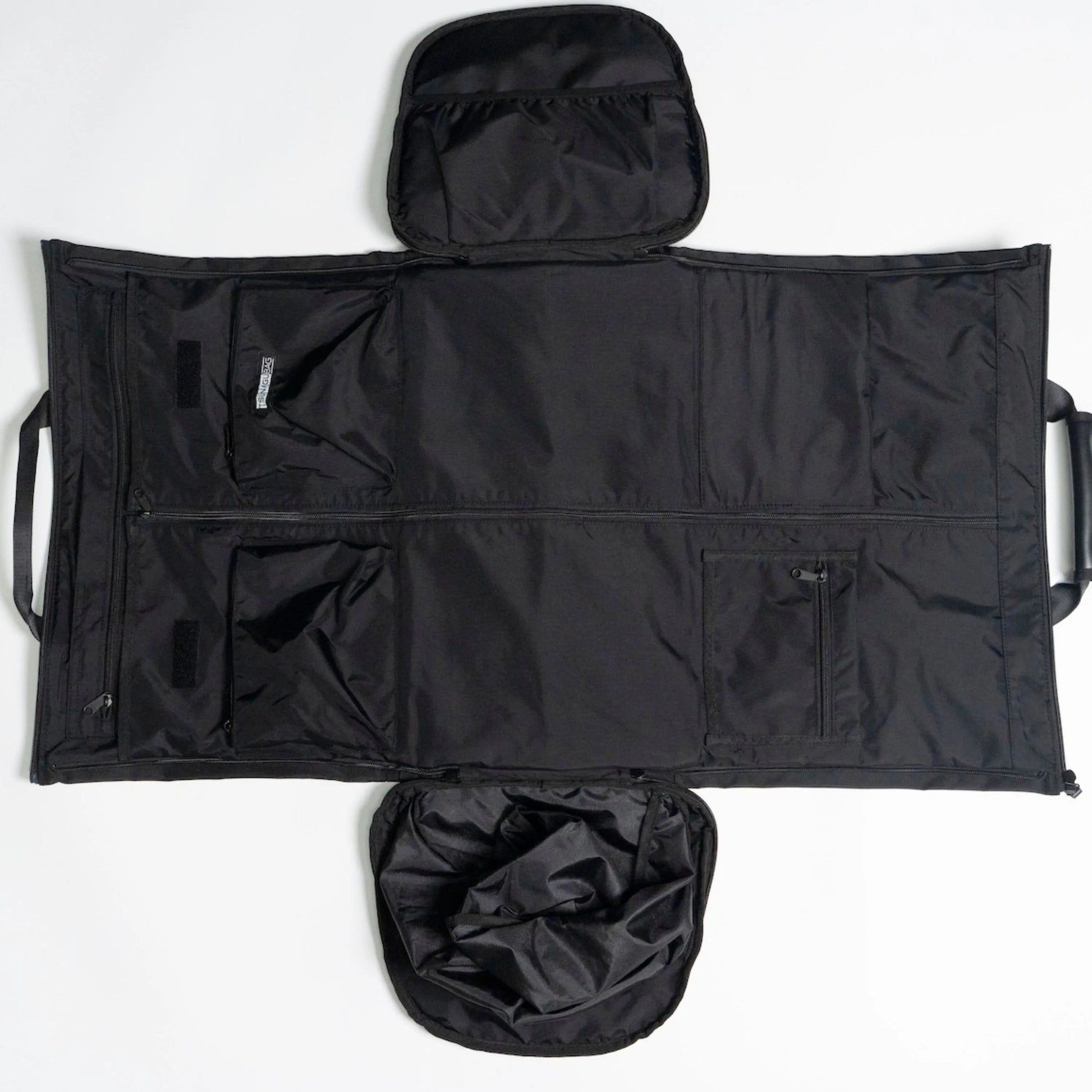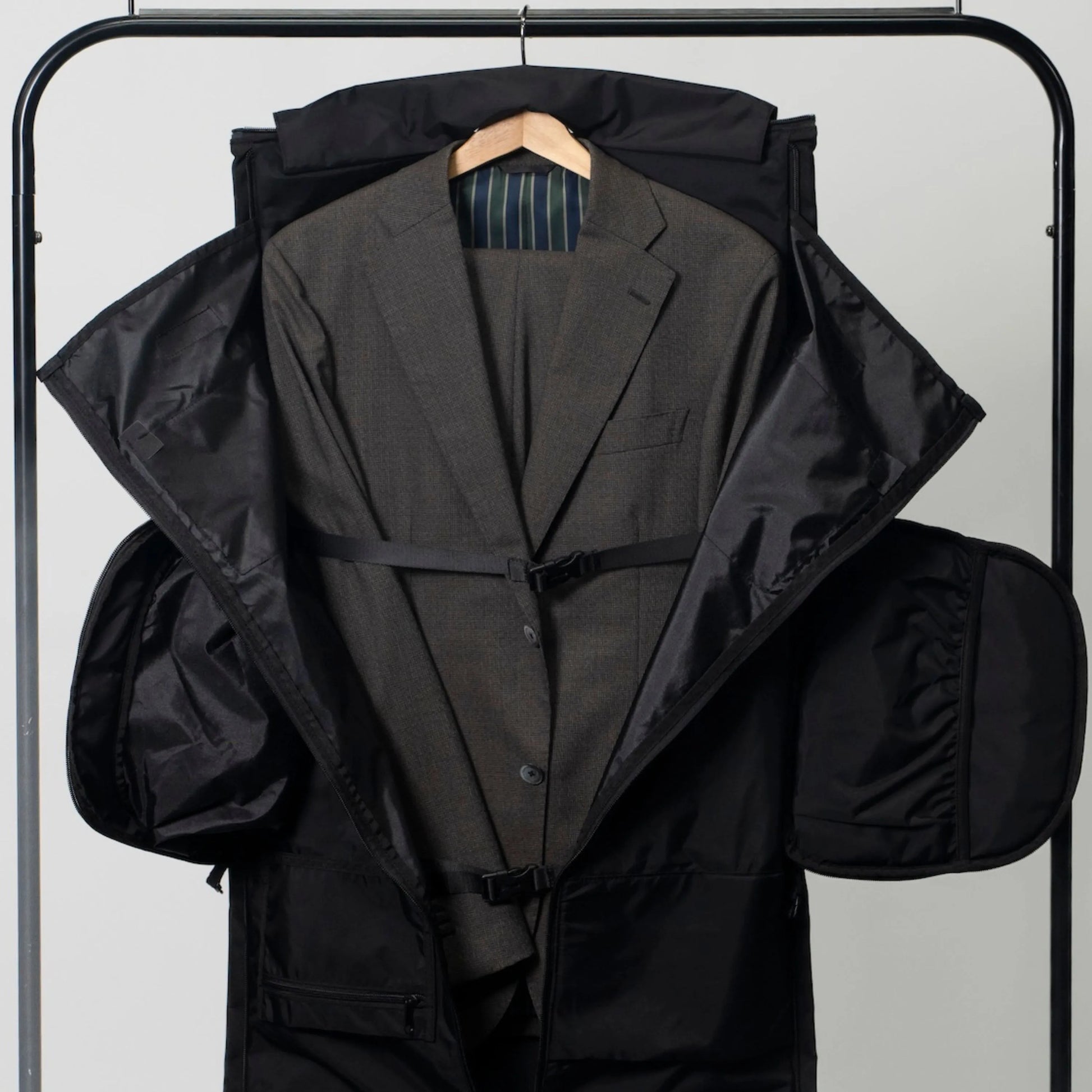 ガーメントバッグのように180度フルオープン可能な設計で、スーツもシワを抑えてそのまま収納できます。